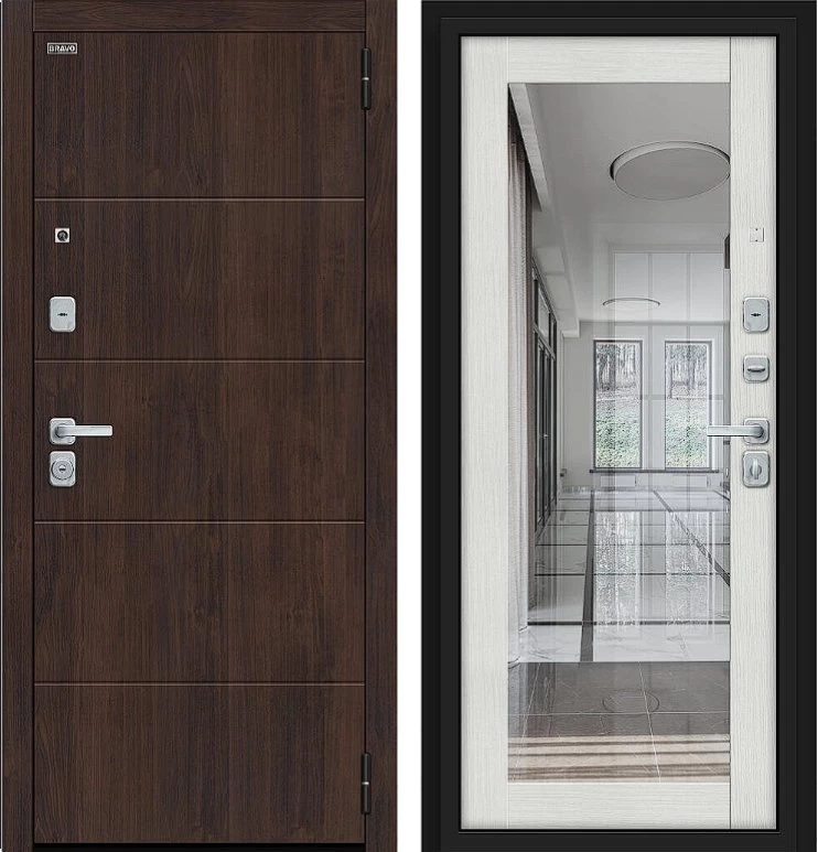 Надежная входная Дверь Браво Флэт/BChrome Almon/Bianco Melinga премиум класса по цене 42 423 руб. Большая толщина стали защитит от проникновения в ваш дом, квартиру или коттедж. Используется очень качественная фурнитура: замки, цилиндры, ручки, защелки. Покрытие и отделка двери изготовлено под внимательным контролем производителя. Дверь имеет долгий срок службы и гарантию.