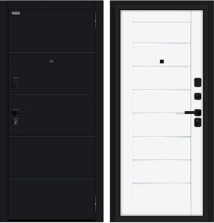 Надежная входная Дверь Браво Прайм/SBlack-Black Shell/White Silk премиум класса по цене 40 023 руб. Большая толщина стали защитит от проникновения в ваш дом, квартиру или коттедж. Используется очень качественная фурнитура: замки, цилиндры, ручки, защелки. Покрытие и отделка двери изготовлено под внимательным контролем производителя. Дверь имеет долгий срок службы и гарантию.