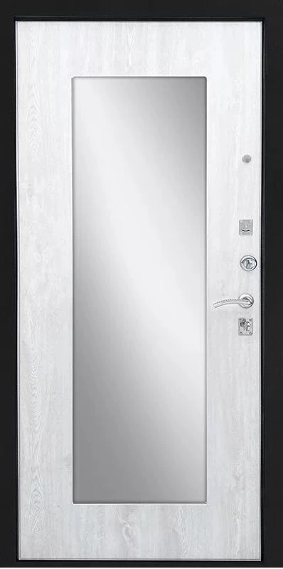 Надежная входная Дверь Ратибор Люкс Зеркало Черное серебро/Сосна белая премиум класса по цене 30 823 руб. Большая толщина стали защитит от проникновения в ваш дом, квартиру или коттедж. Используется очень качественная фурнитура: замки, цилиндры, ручки, защелки. Покрытие и отделка двери изготовлено под внимательным контролем производителя. Дверь имеет долгий срок службы и гарантию.