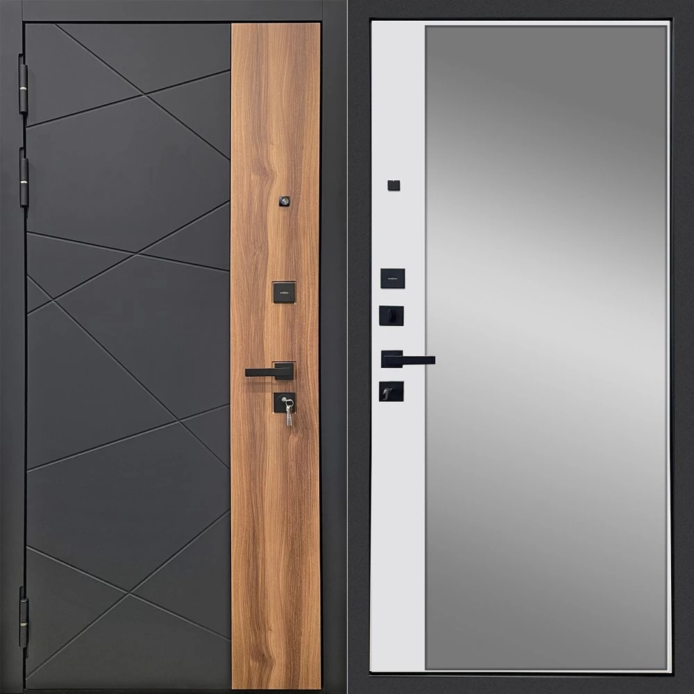 Дизайнерская входная Дверь Ратибор РАКУРС 3К ЗЕРКАЛО класса Люкс с несколькими листами стали, звукоизоляцией и теплоизоляцией. Утепленный короб и полотно защитят от сквозняков и шумов. Модель не только надежная, комфортная, защищенная и высочайшего качества, но и очень красивая! Будет отлично сочетаться с интерьером дома, квартиры или офиса. Сейчас действует выгодное предложение по цене: 55 273 руб.