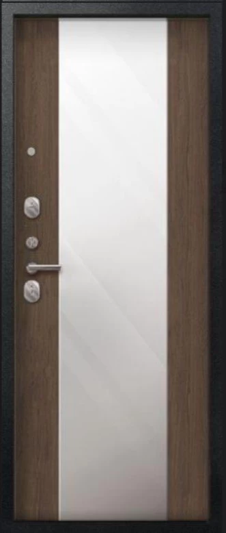 Надежная входная Дверь V-04 Черный муар - Миндаль Зеркало премиум класса по цене 44 923 руб. Большая толщина стали защитит от проникновения в ваш дом, квартиру или коттедж. Используется очень качественная фурнитура: замки, цилиндры, ручки, защелки. Покрытие и отделка двери изготовлено под внимательным контролем производителя. Дверь имеет долгий срок службы и гарантию.